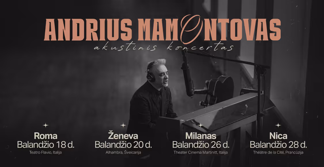 Having gathered a large audience both in Lithuania and abroad, artist Andrius Mamontovas brings good news to his fans—he is embarking on a European concert tour in Switzerland, Italy, and France. Attendees will enjoy an intimate and slow-paced experience at A. Mamontovas' acoustic concerts, where both well-known and new songs by the artist and the band "FOJE" will be performed.
